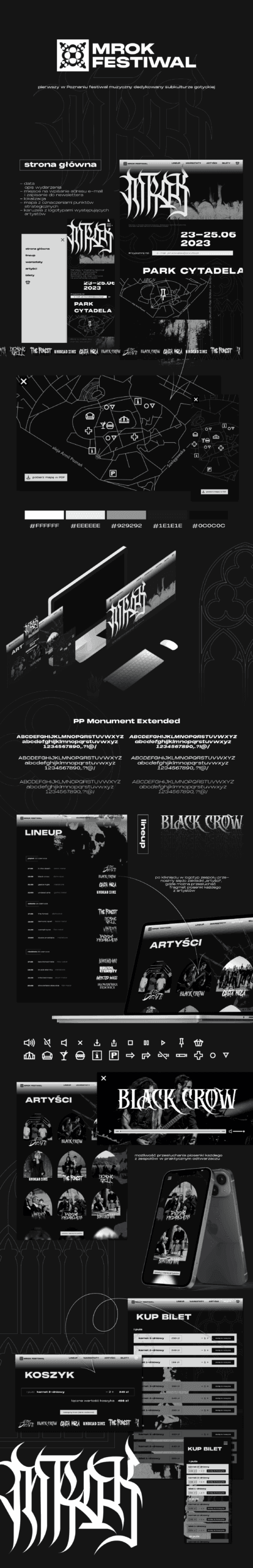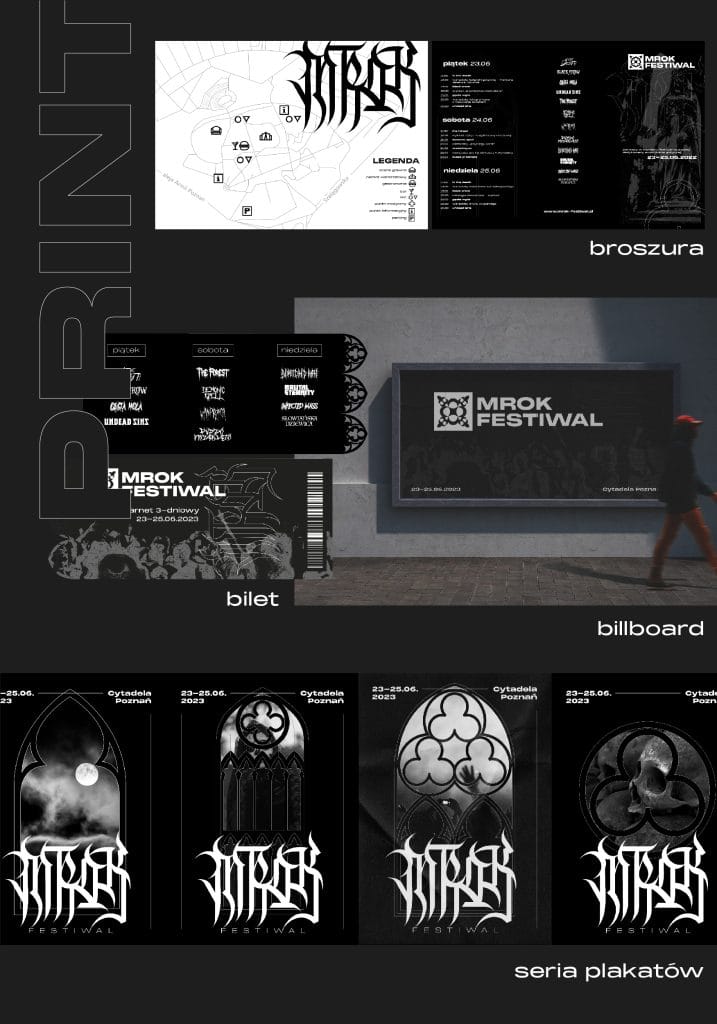 Cel: stworzenie kompletnej identyfikacji wizualnej dla wydarzenia artystycznego o wyrazistym, alternatywnym charakterze.